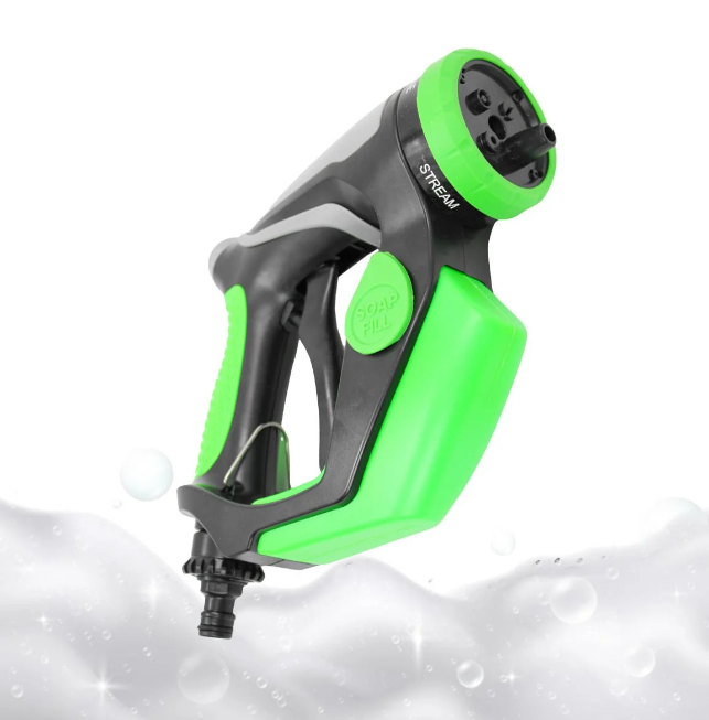 O Esguicho Para Mangueira 4 em 1 é perfeito para limpar seu carro ou ambiente externo com mais eficiência e rapidez. O esguicho multifuncional conta com jato de espuma de sabão, jato fixo, jato vertical e jato em cone.