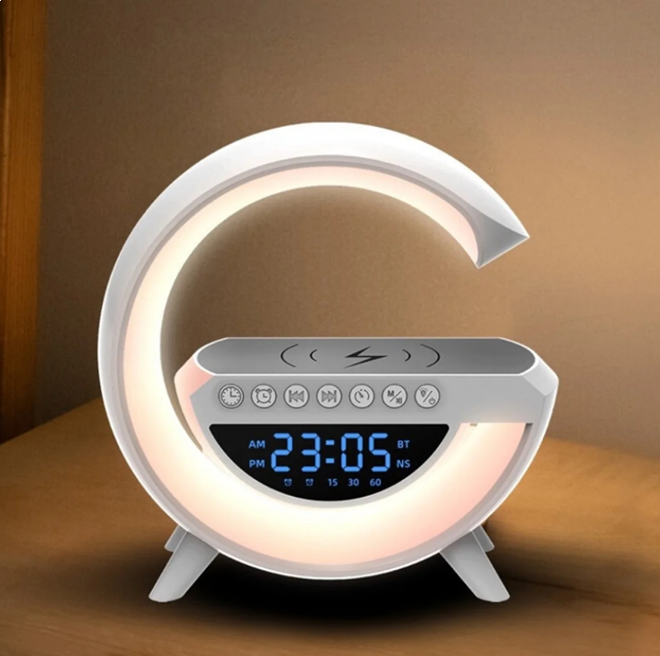 Caixa De Som Bluetooth Carregamento Indução Relógio Luminária Bluetooth